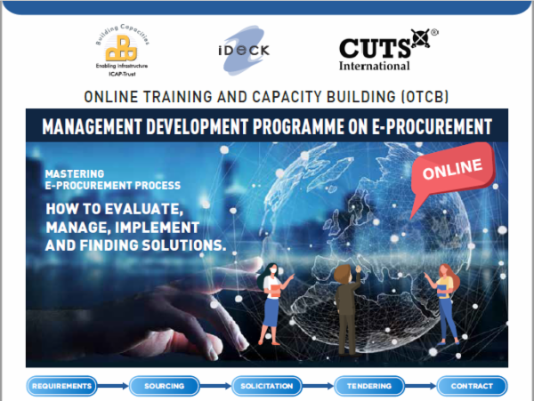The training programme’s session plans have been carefully designed to cover both, the practices of E-Procurement with case studies and theme based group discussions. We believe this would not only be immensely beneficial for training participants, from an implementation point of view, but also sensitise them about the procedural changes as well as guidelines issued by government and multi-lateral funding agencies for tendering, auctions and other procurement methods.